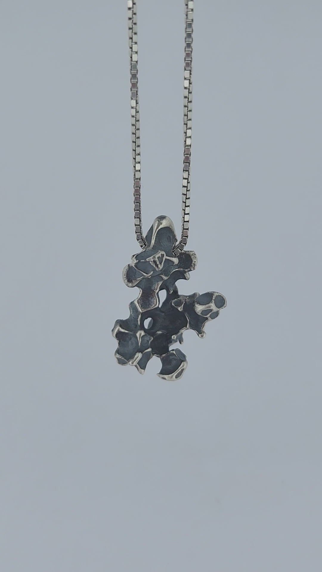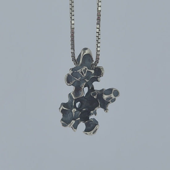 This striking sterling silver pendant showcases the organic beauty of bean casting, a traditional metalworking technique.