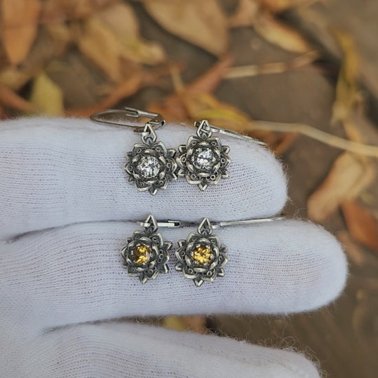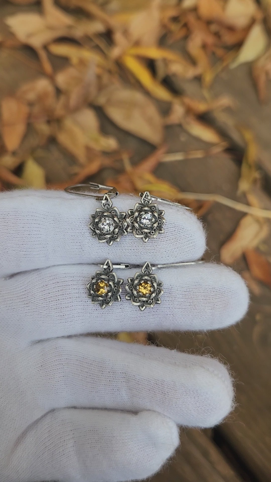 Introducing my stunning sterling silver earrings, designed to resemble futuristic lotus flowers. Each pair showcases exquisite craftsmanship, capturing the essence of elegance and modernity. Adorned with your choice of yellow or white sapphires—these earrings add a vibrant pop of color. Perfect for any occasion, they symbolize beauty and resilience, making them a timeless addition to your jewelry collection. Wear them and let your style bloom!