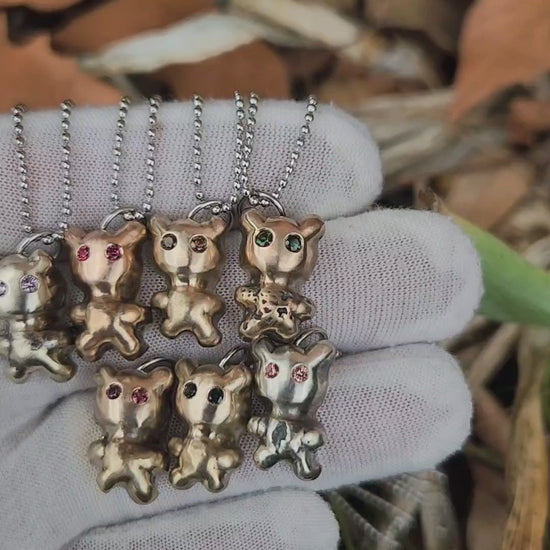 This 'Teddy Bear' pendant from the Relic Series is hand poured using my custom shibuichi alloy, a traditional Japanese silver–copper blend known for its warm tone and organic character.