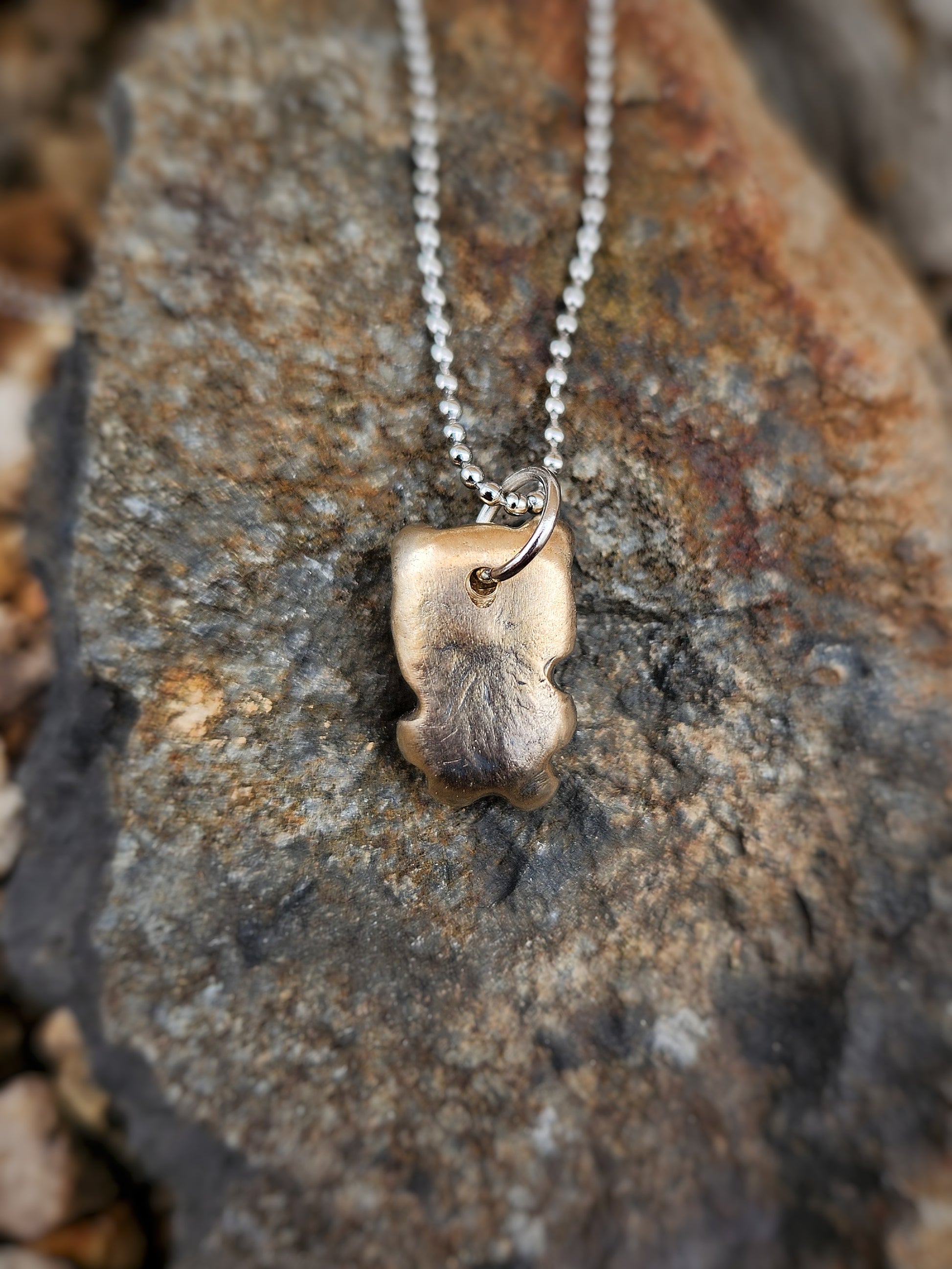 This 'Teddy Bear' pendant from the Relic Series is hand poured using my custom shibuichi alloy, a traditional Japanese silver–copper blend known for its warm tone and organic character.