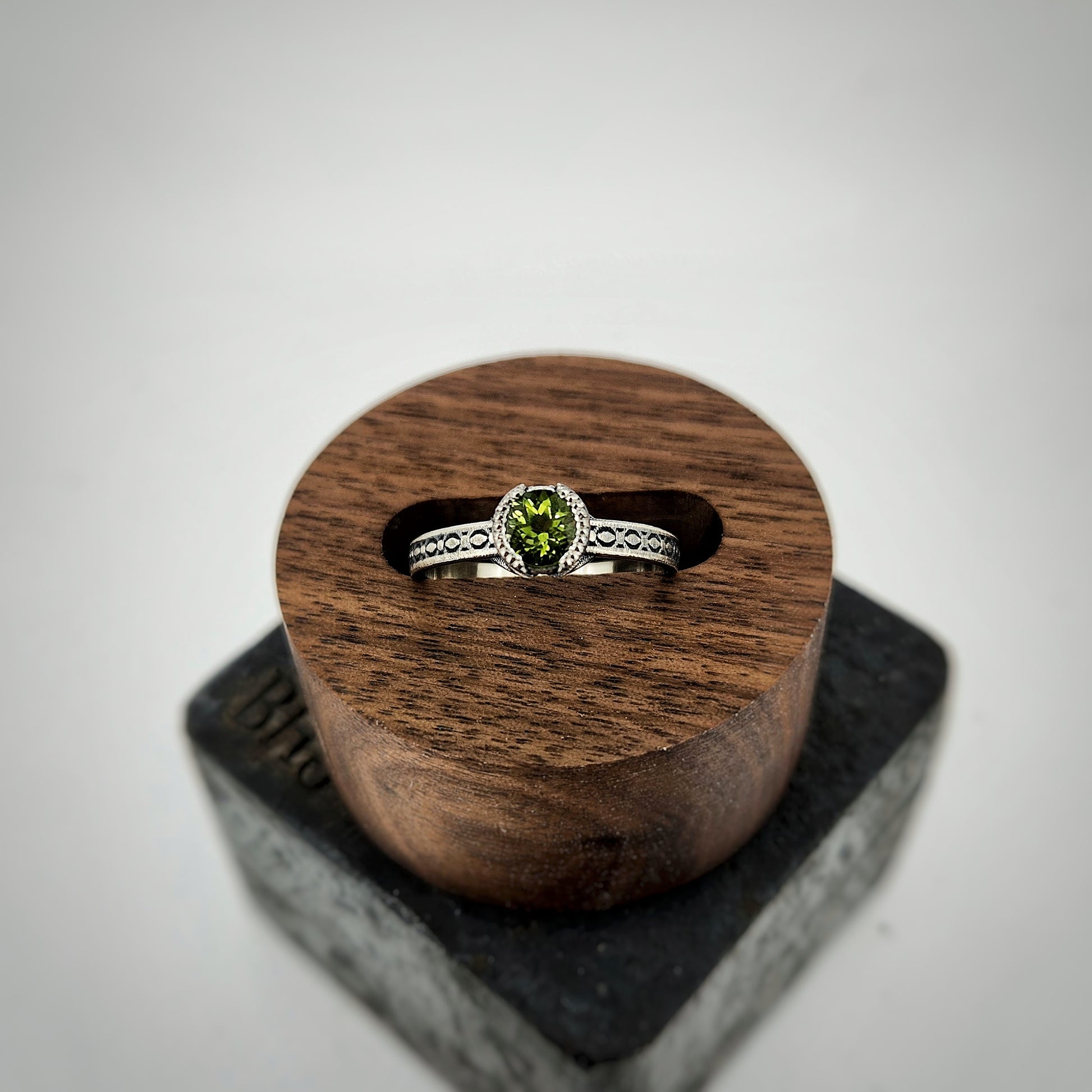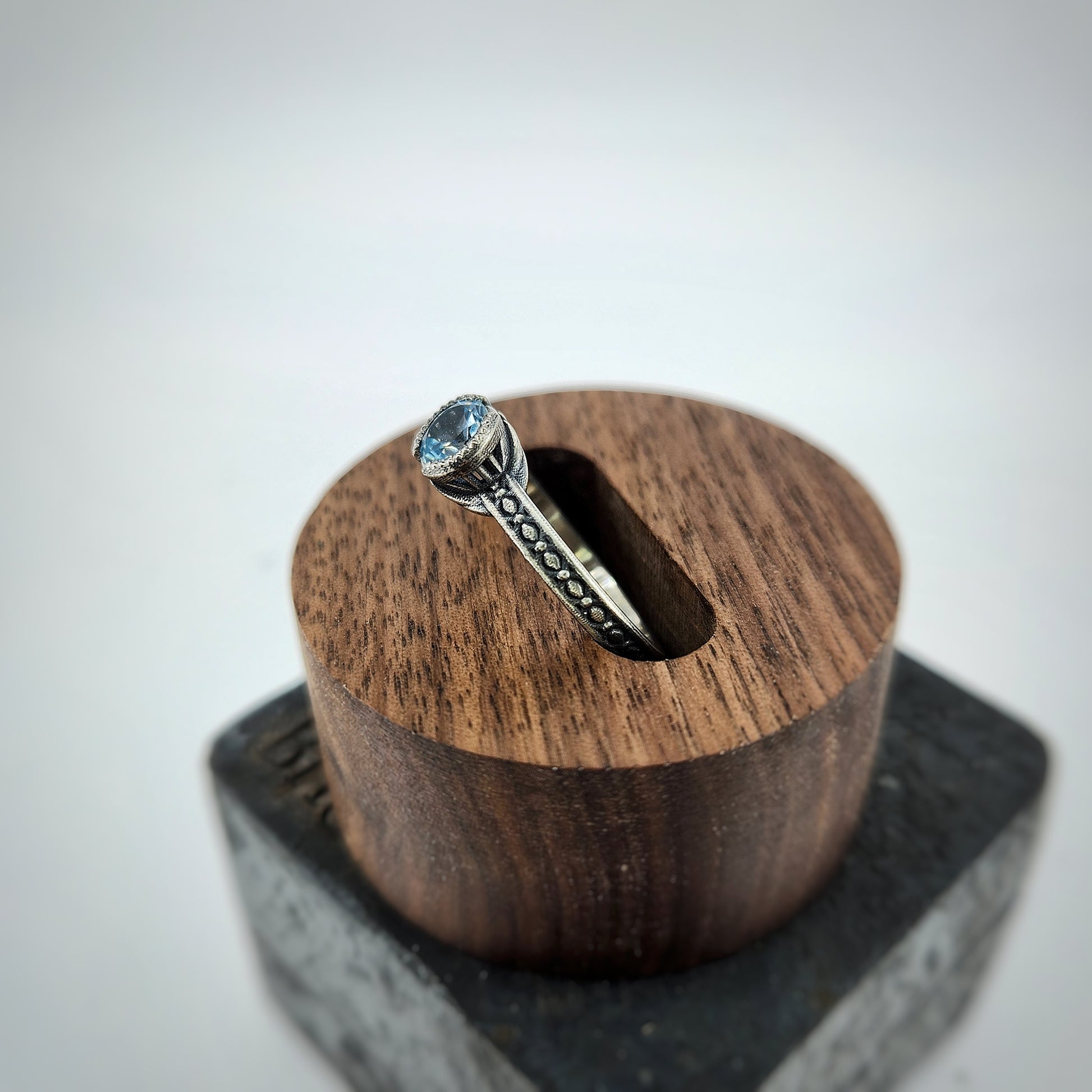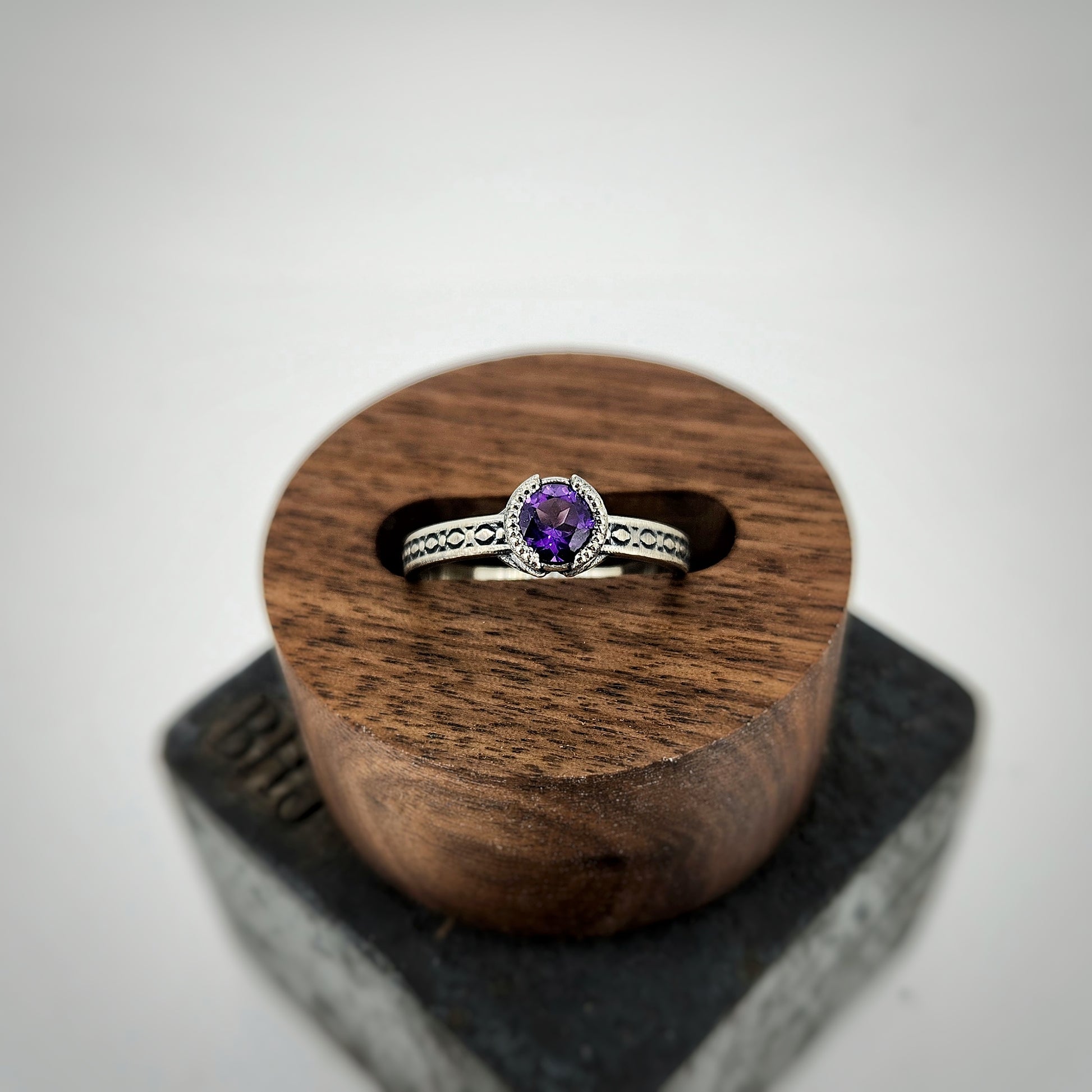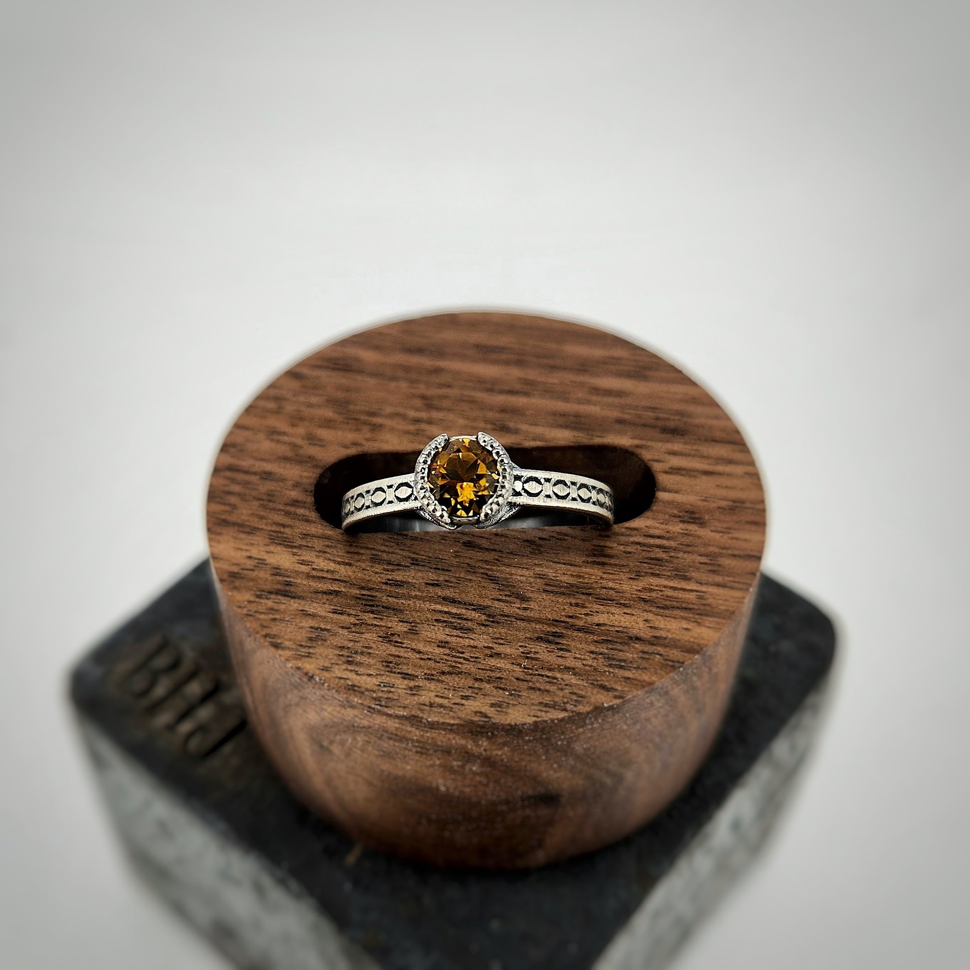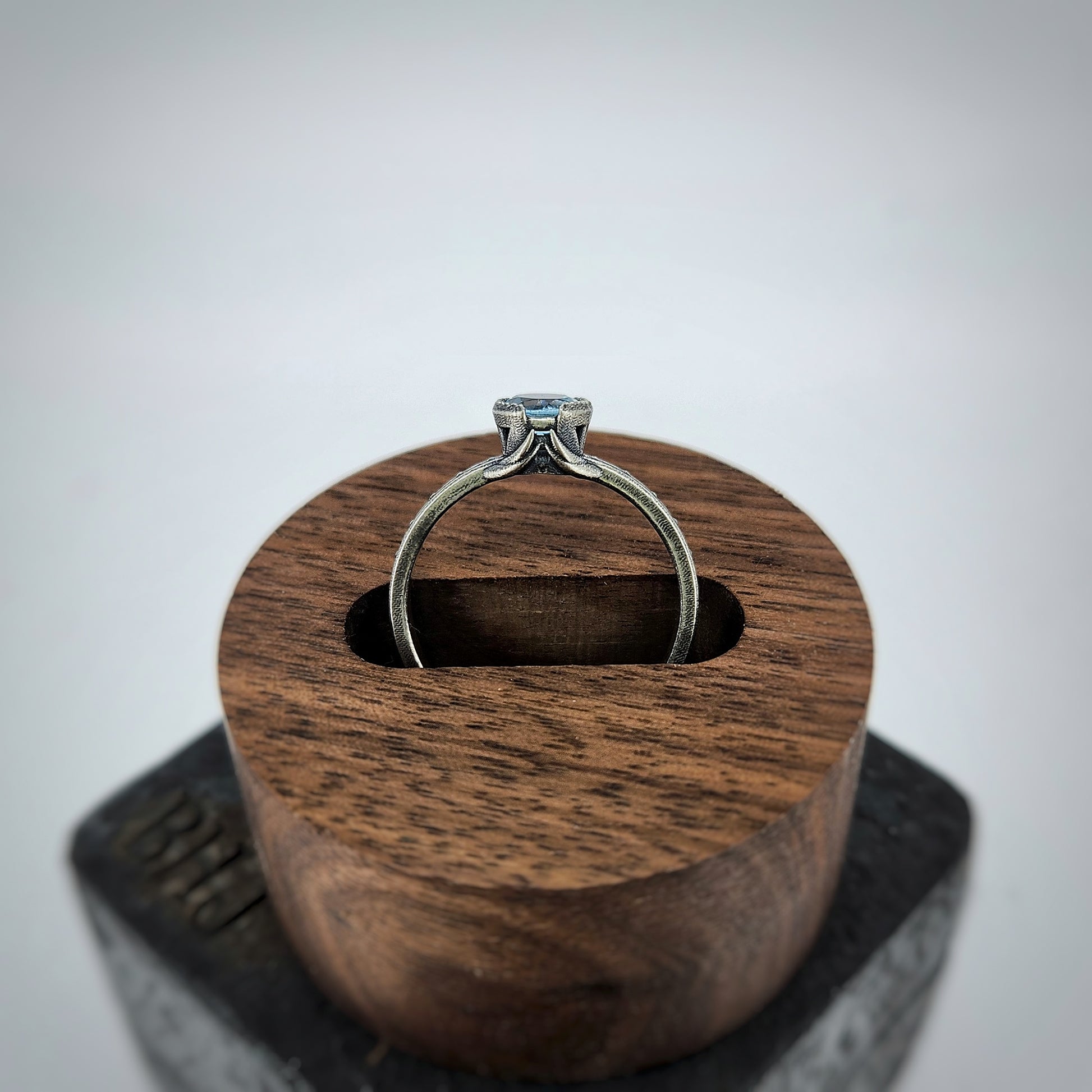 Introducing my newest ring style. I designed it to have a simplistic look and feel, while incorporating a mix of Victorian/Deco as well as an organic flow. The detailing on the band is a full wrap, meaning there are no empty spots on the underside.