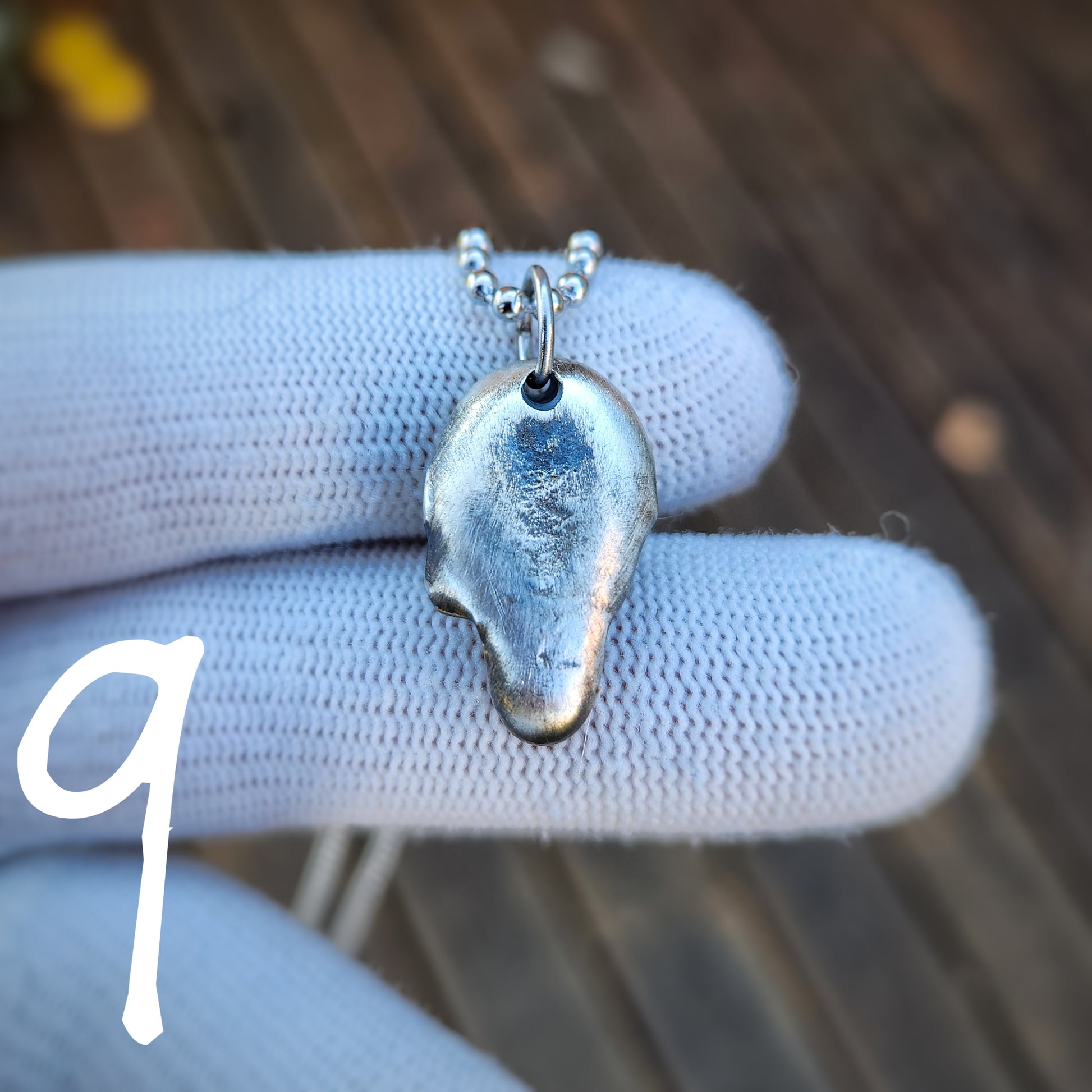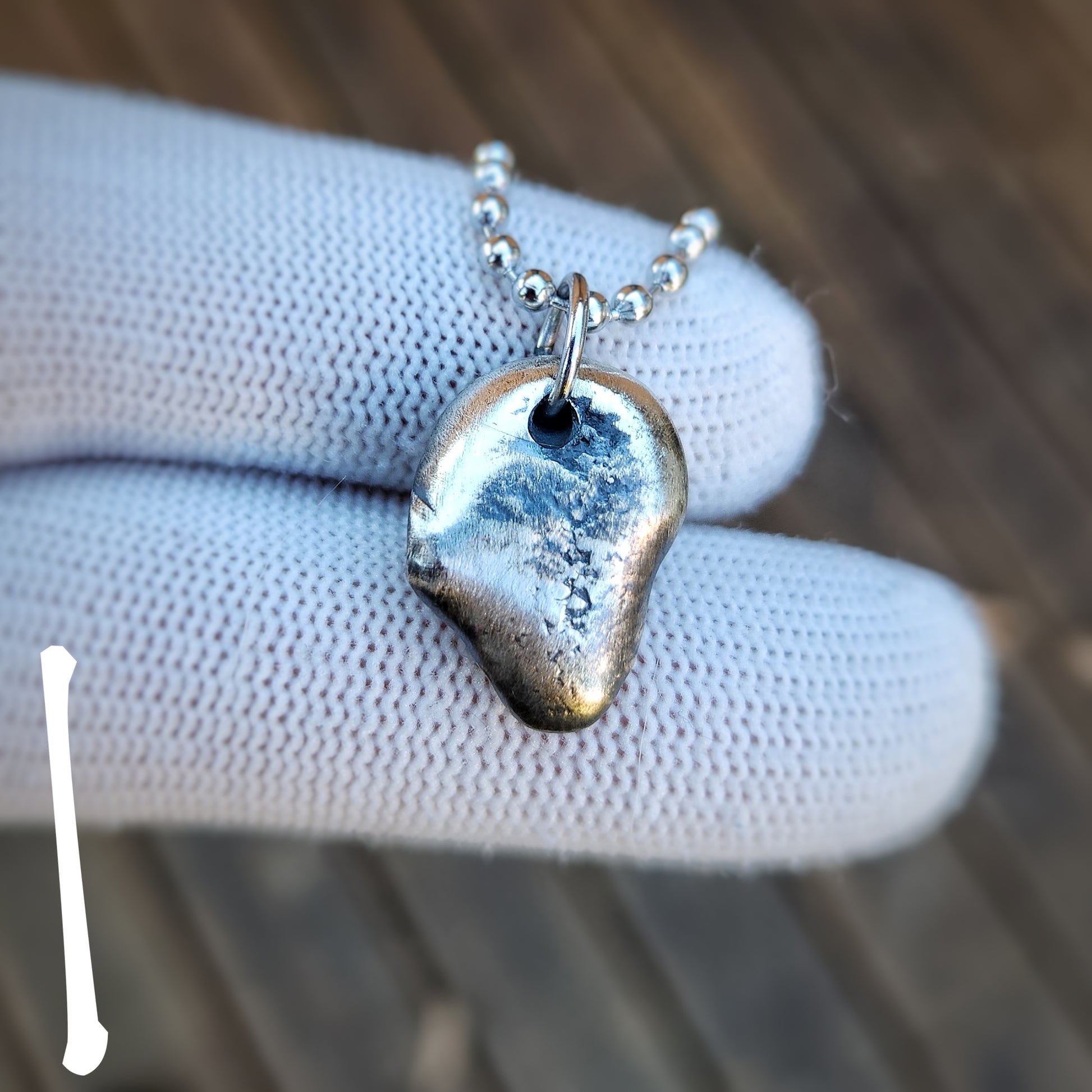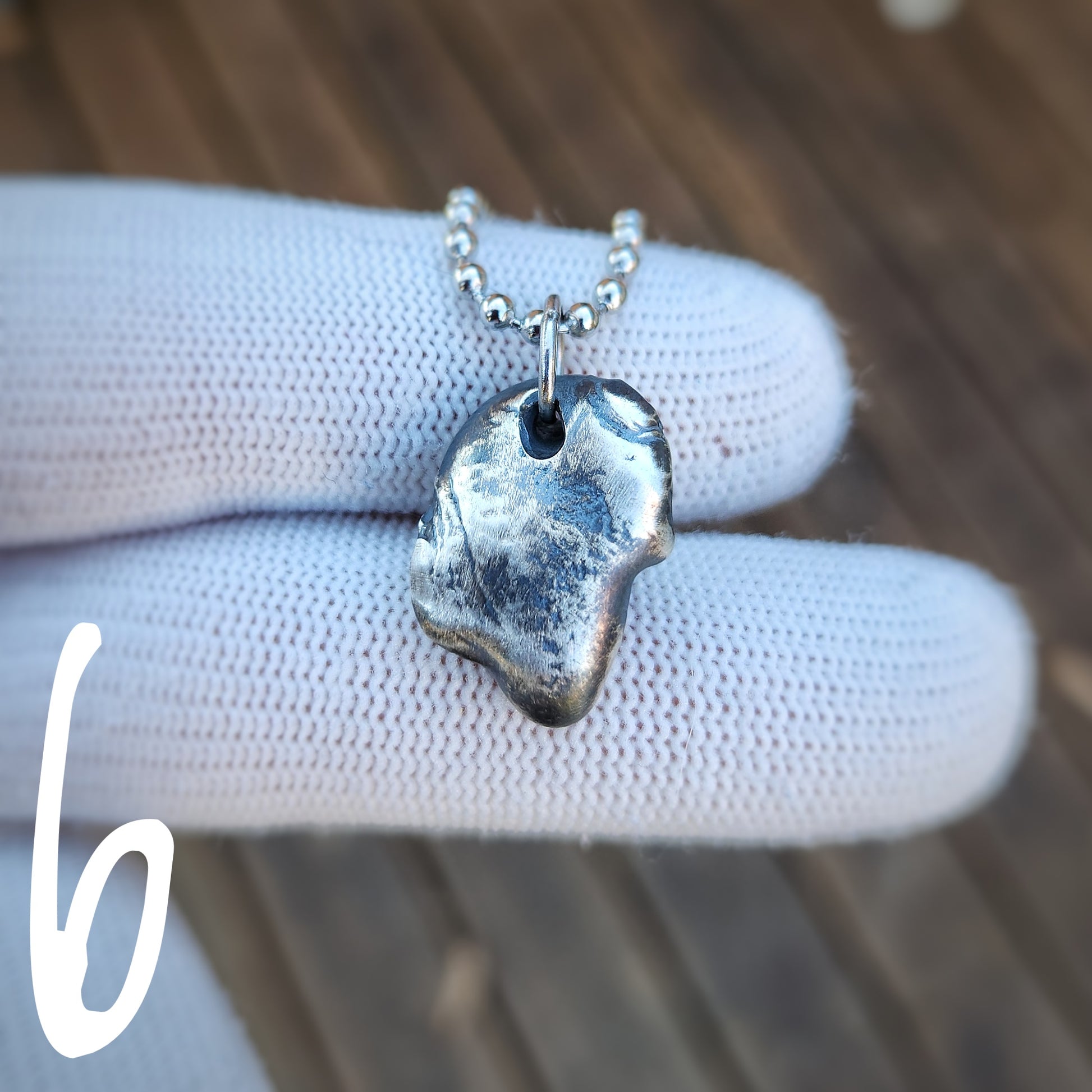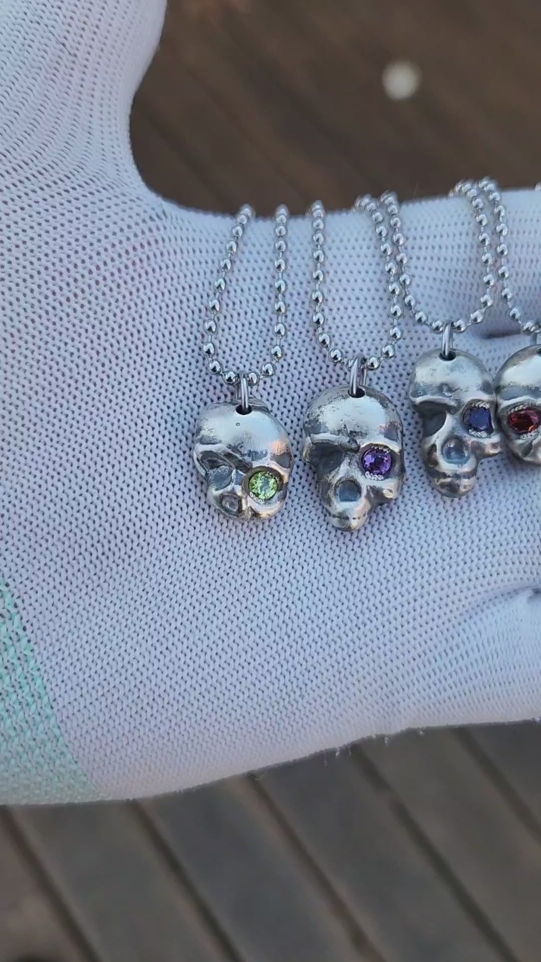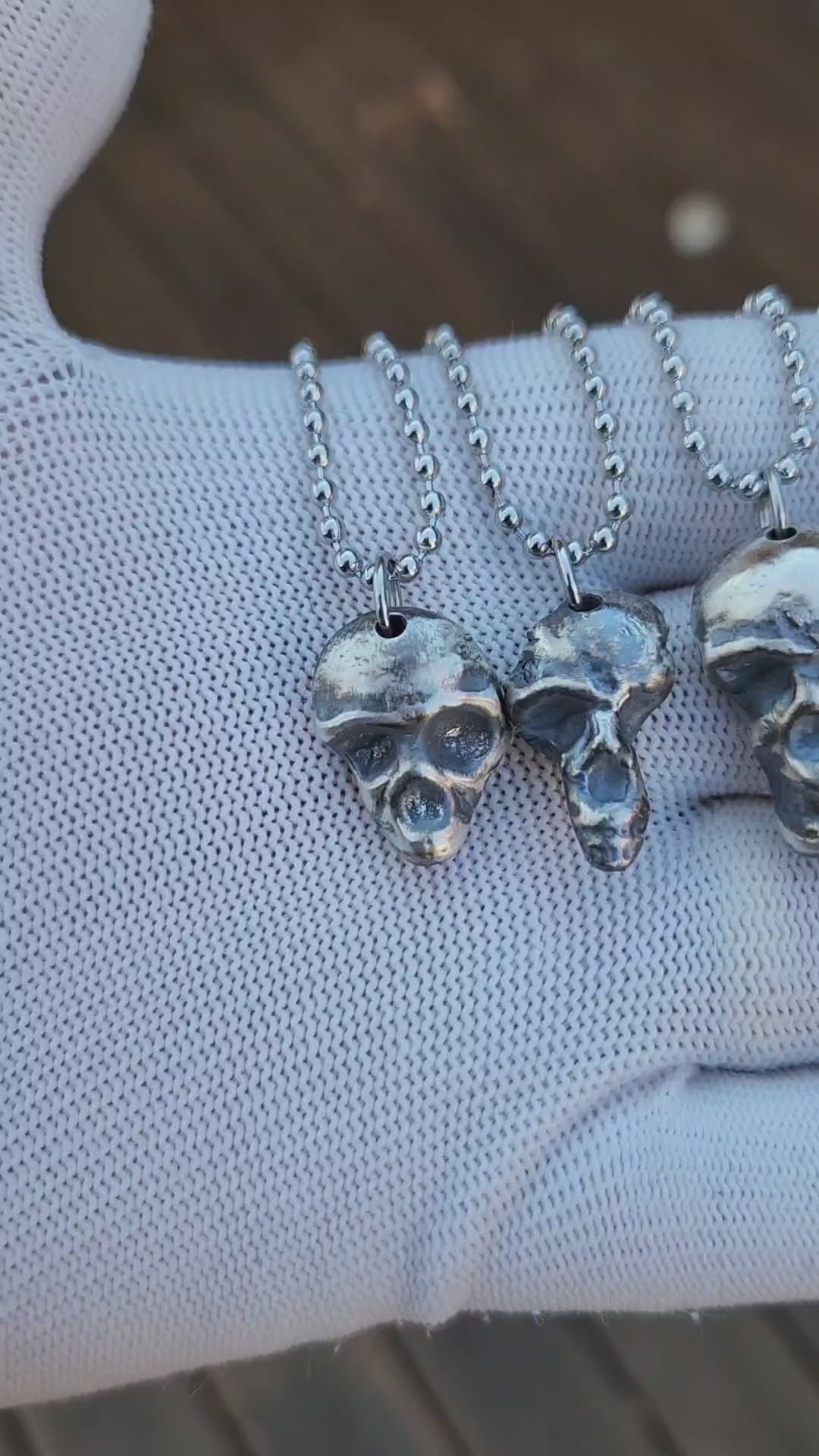 Each pendant in this striking collection is born from the raw, unpredictable beauty of molten sterling silver. Created through a controlled partial pour technique, these one-of-a-kind skull pendants capture the organic flow and texture of liquid metal as it begins to solidify, resulting in pieces that are simultaneously refined and primal.