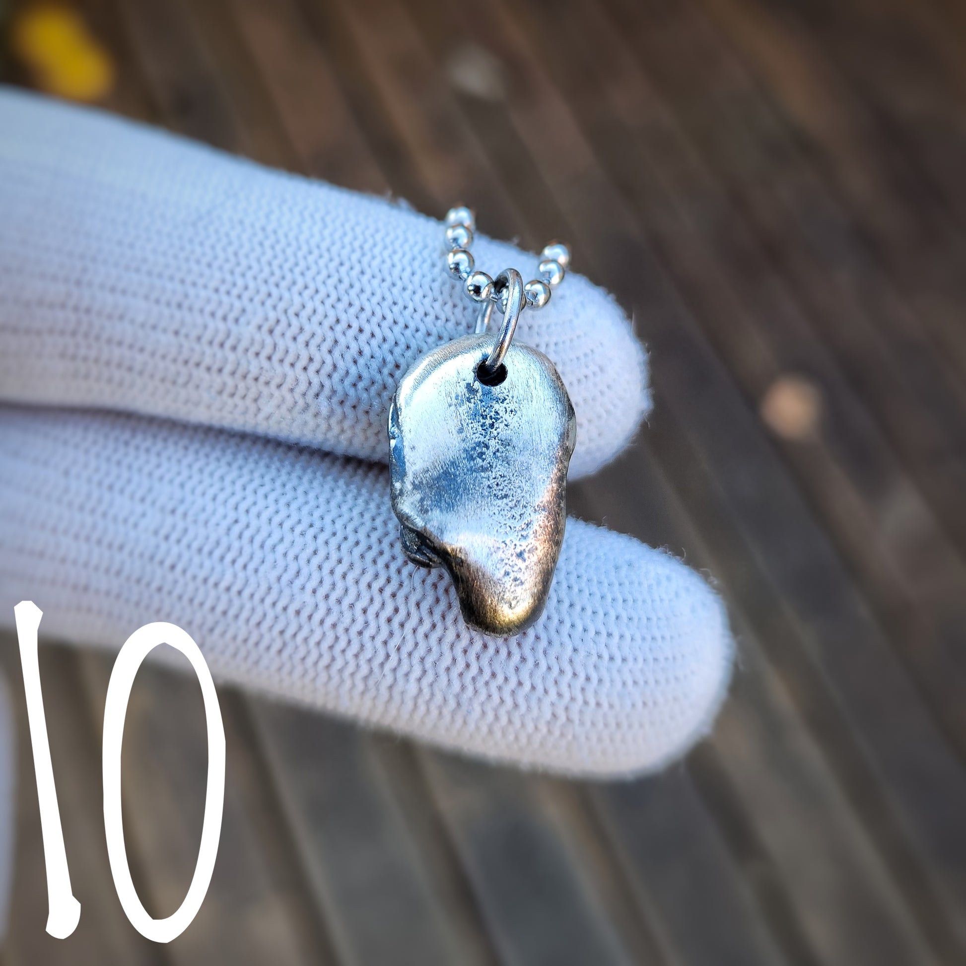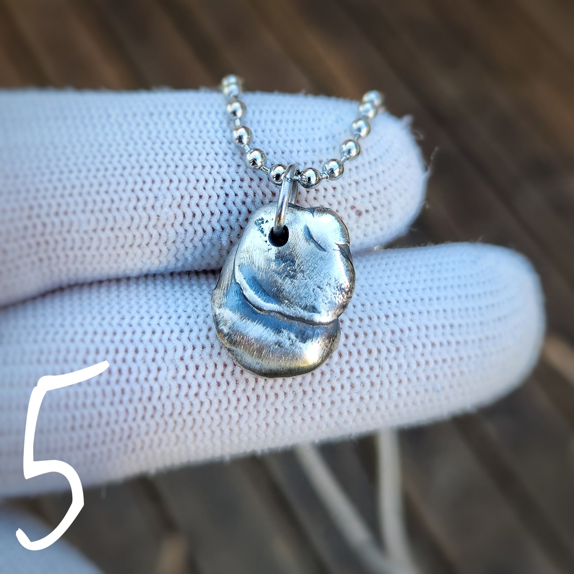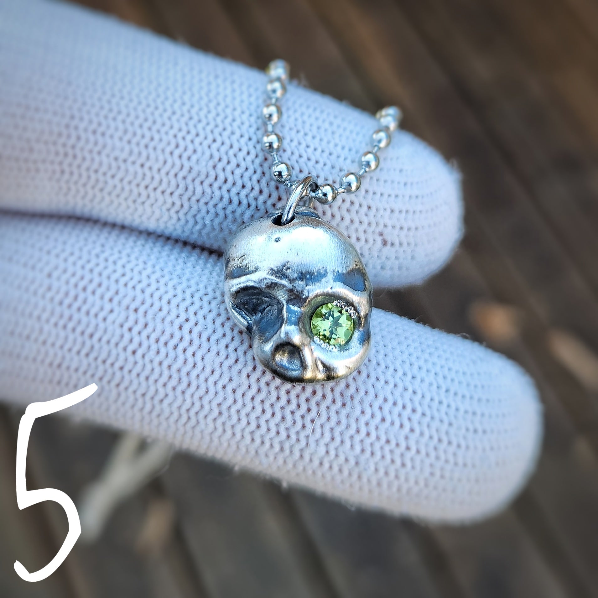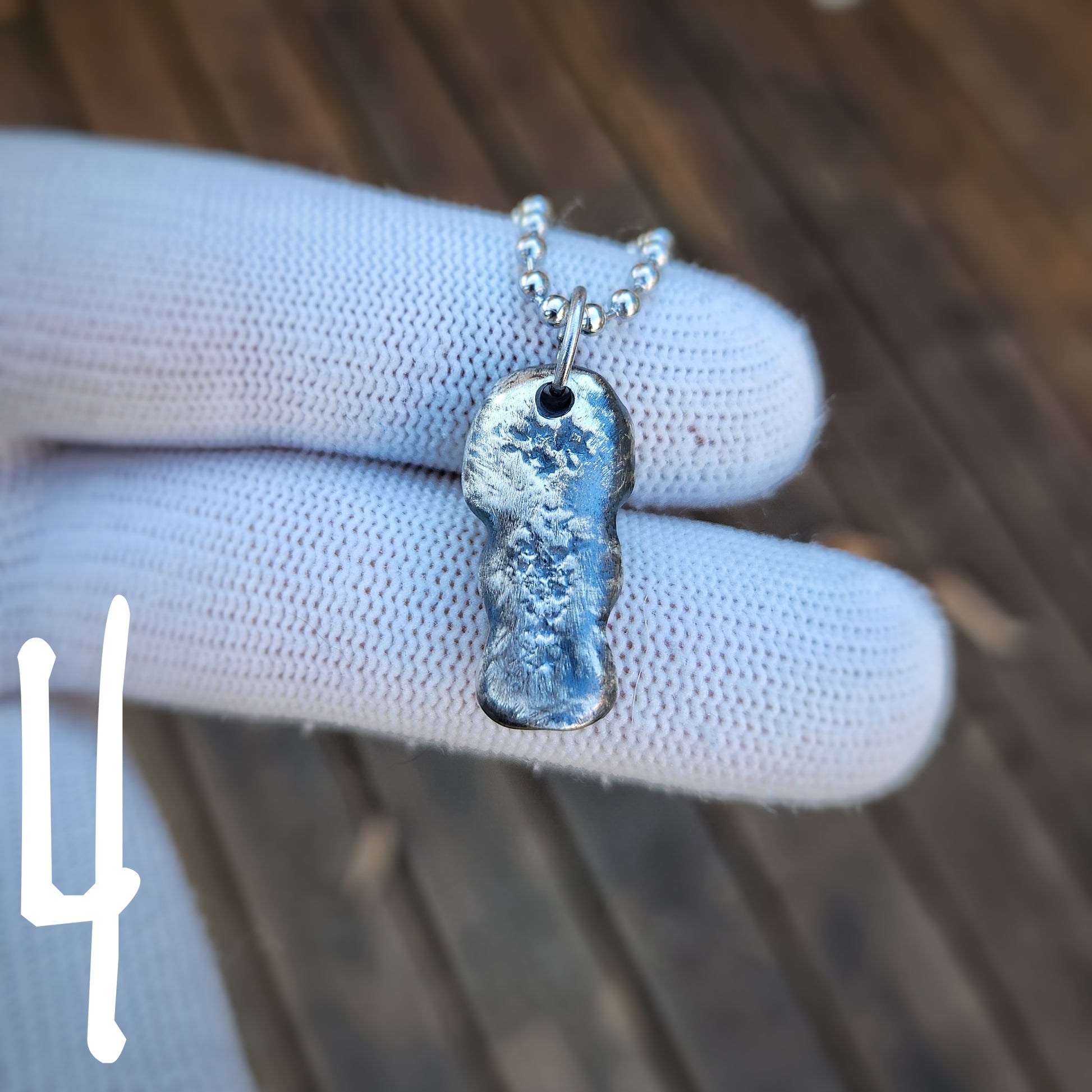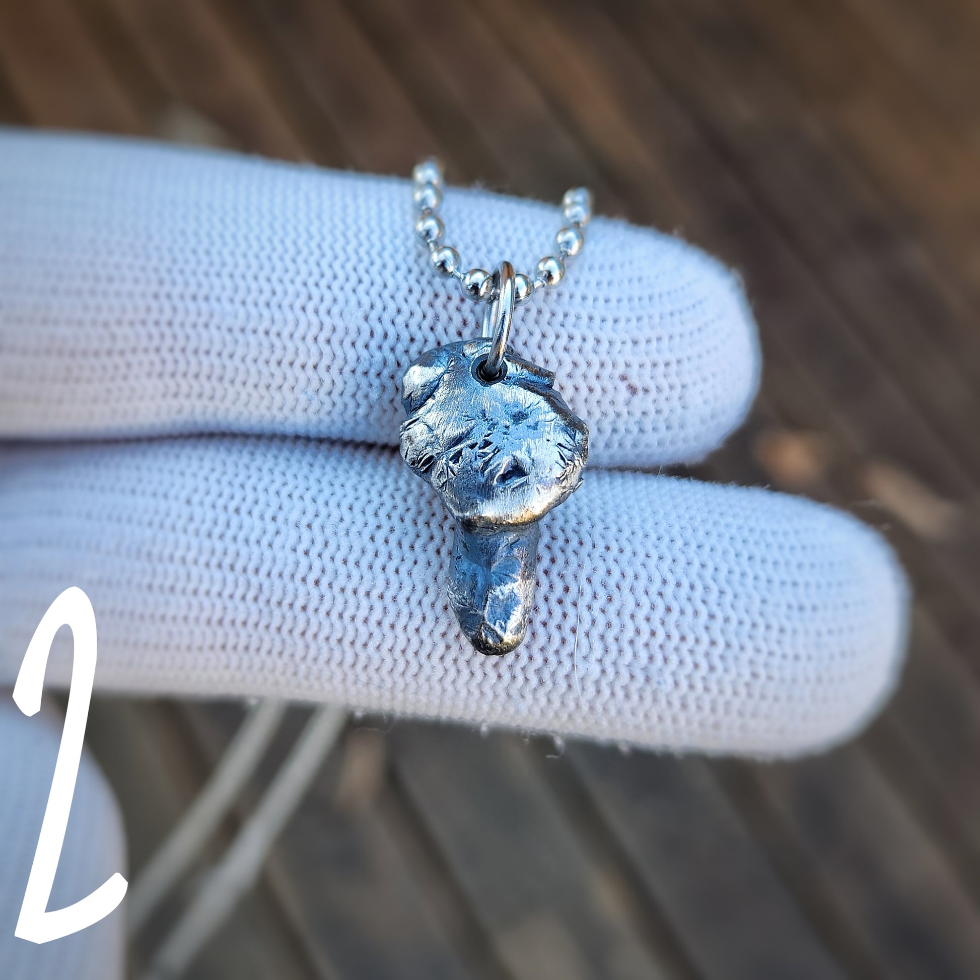 Each pendant in this striking collection is born from the raw, unpredictable beauty of molten sterling silver. Created through a controlled partial pour technique, these one-of-a-kind skull pendants capture the organic flow and texture of liquid metal as it begins to solidify, resulting in pieces that are simultaneously refined and primal.